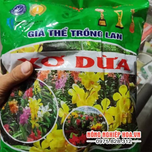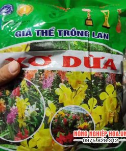 ( Giá thể xơ dùa dối nhẹ giữ ẩm tốt không giảm sức nặng cho giàn lan)
